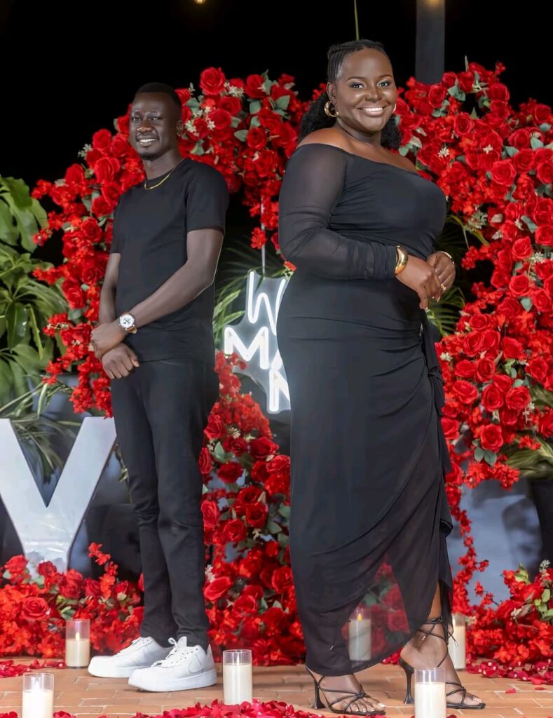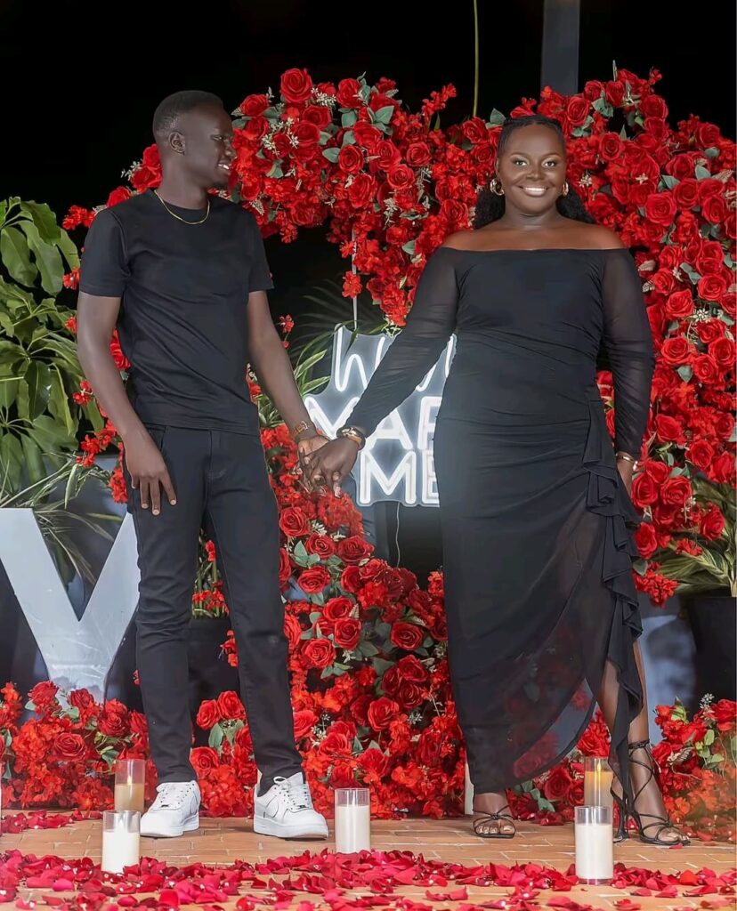 Dr. Hillary Okello presented Happy with a vibrant red bouquet and knelt on one knee at a cozy location to propose. Overwhelmed with joy, Happy accepted the proposal, and the crowd erupted in cheers and applause. The couple then shared warm moments, dancing joyfully to smooth saxophone tunes and embracing their new chapter together.